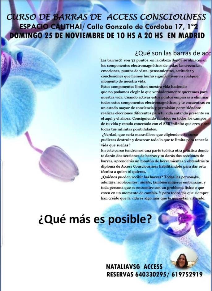 NOVIEMBRE: Curso de Barras de Access Conciouness 22 noviembre, 2018 por calithai, posted in Agenda Compartir en Facebook (Se abre en una ventana nueva) Facebook Compartir en X (Se abre en una ventana nueva) X Email a link to a friend (Se abre en una ventana nueva) Correo electrónico Compartir en WhatsApp (Se abre en una ventana nueva) WhatsApp Relacionado
