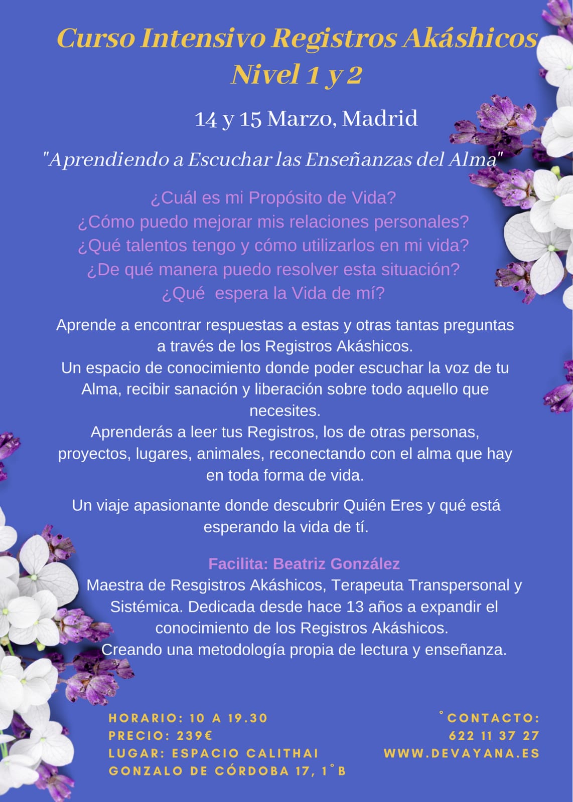 Una preciosa oportunidad para escuchar y vivir desde el Alma.Y llevar toda esa sabiduría y presencia a tu vida.