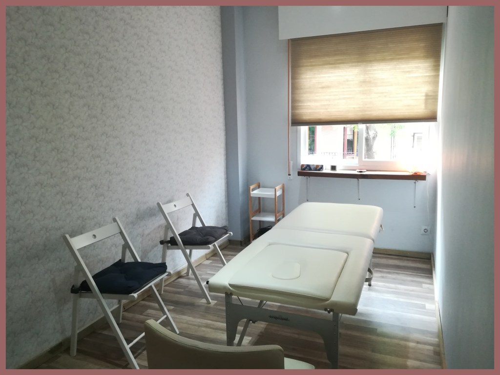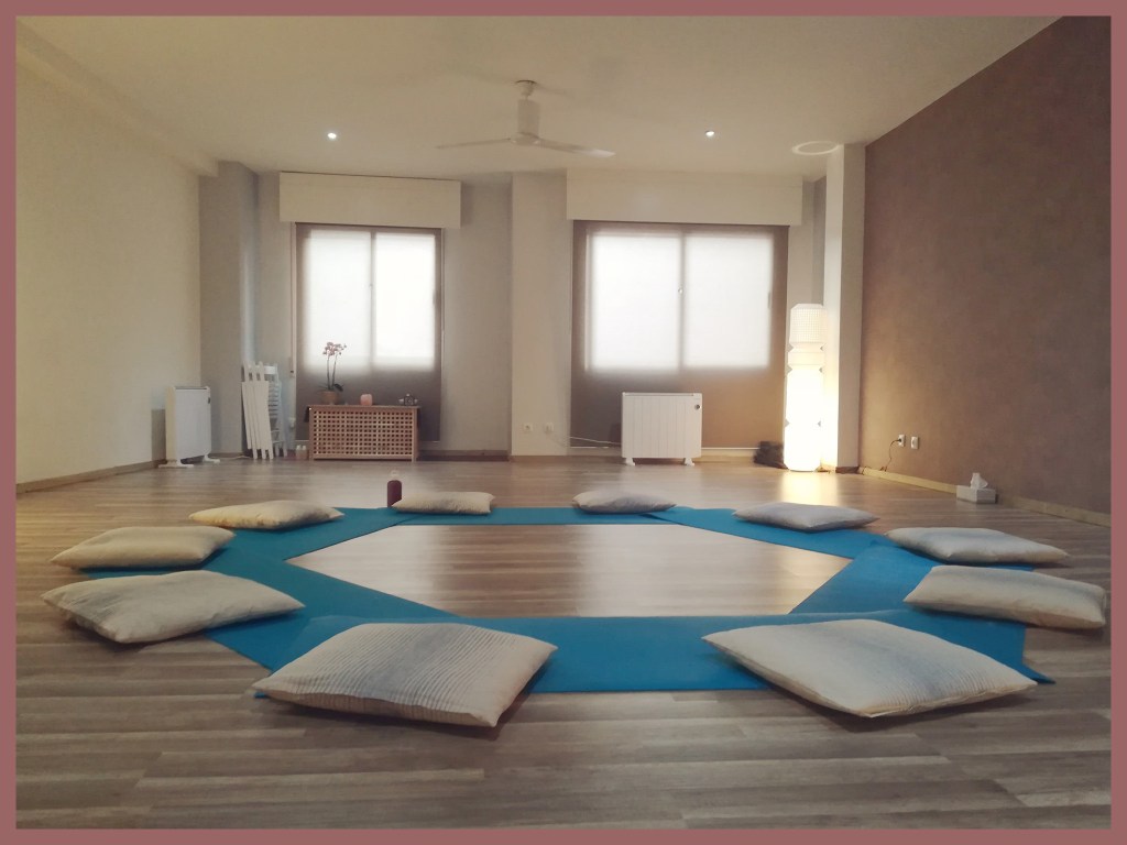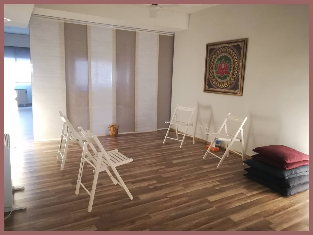 - Materiales disponibles: sillas, cojines, mantas, esterillas, pizarra, esqueleto anatómico.
