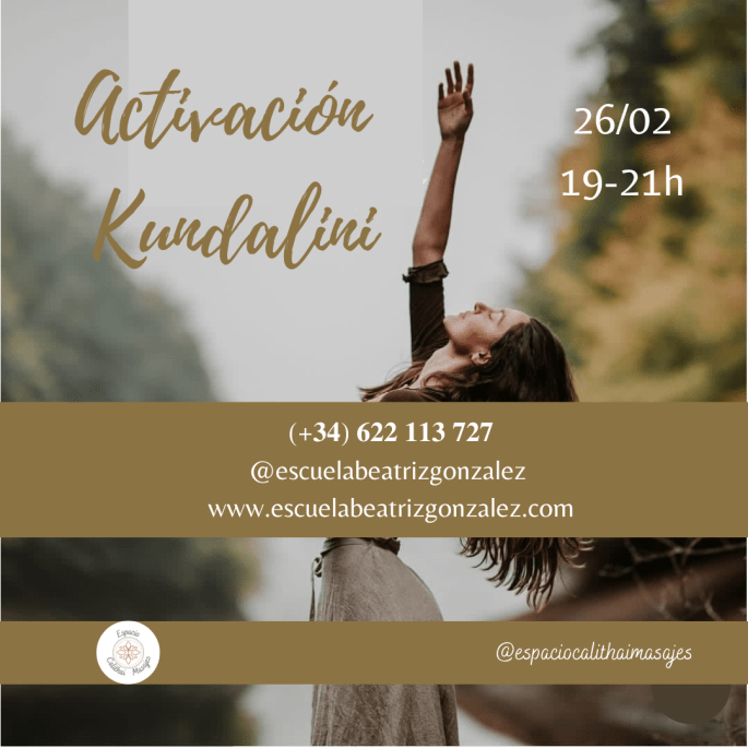 Activación Energética KUNDALINI ENERGY La activación de la Kundalini es una experiencia donde despertamos la energía vital que se encuentra en la base de la columna vertebral. Cuando la Kundalini se despierta provoca diversos cambios en la vida de la persona. Estos cambios pueden ser físicos, mentales, emocionales y espirituales. El despertar de la Kundalini es un … Sigue leyendo FEBRERO: Activación Kundalini
