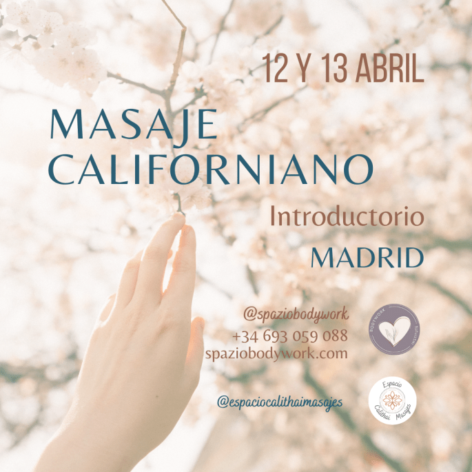 MASAJE CALIFORNIANO NIVEL INTERMEDIO Continuamos desplegando la Formación de Masaje Californiano del Institute Bodywork. Durante esta travesía de 4 fines de semana daremos un pasito más para zambullirnos en la experiencia de cómo el universo cabe en lo más pequeño. Los opuestos abrazándose. Este nivel se caracteriza por llevar la atención al foco, precisión, definición y detalle: desarrollando un trabajo en los tejidos más … Sigue leyendo ABRIL: MASAJE CALIFORNIANO Formación Intermedia