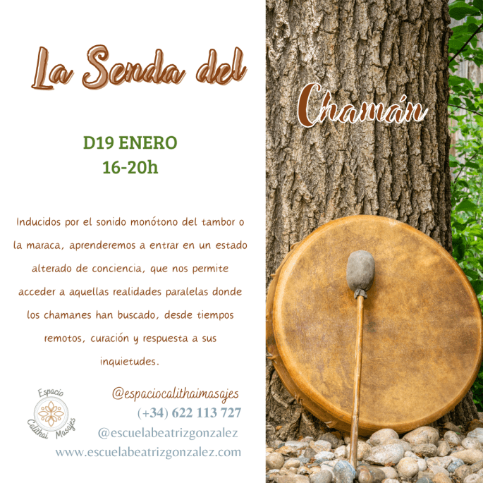 TALLER CHAMANIsmO Un domingo al mes podrás disfrutar de un espacio donde abrirte a las diferentes prácticas chamánicas; que en este momento representan uno de los principales impulsos del despertar espiritual en el mundo occidental. Si bien las tradiciones espirituales modernas tienen su sabiduría y belleza, el chamanismo ha resistido durante milenios las pruebas del … Sigue leyendo ENERO: La Senda del Chamán