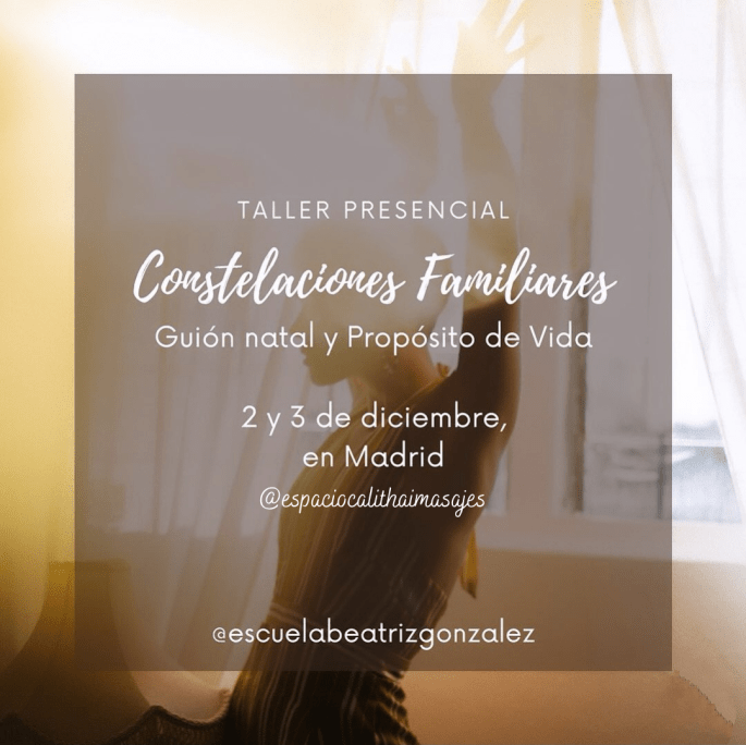 Constelaciones Familiares "GUION NATAL Y PROPOSITO DE VIDA" Las Constelaciones Familiares son una herramienta terapéutica que nos ayuda a comprender y liberar nuestra vida. A través de una representación física se manifiesta el nudo o bloqueo que hay en nuestro inconsciente acerca del asunto que queremos solucionar. Bien sea una relación afectiva, una enfermedad, la profesión, … Sigue leyendo DICIEMBRE: Ciclo CONSTELACIONES FAMILIARES