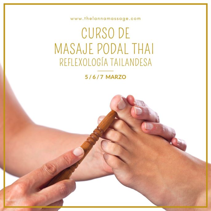 CURSO DE MASAJE PODAL THAI ·REFLEXOLOGÍA TAILANDESA · Aprende una de las técnicas ancestrales más valoradas y presentes en la vida cotidiana del Sudeste Asiático Un arte de masaje curativo y preventivo, que equilibra las funciones del organismo a través de la estimulación de los canales energéticos de pies y piernas (líneas Sen Sib) mediante … Sigue leyendo MARZO: Curso REFLEXOLOGÍA PODAL Tailadesa
