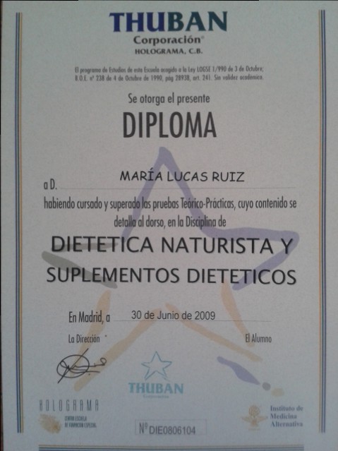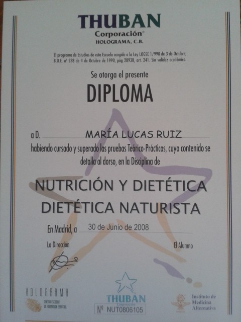 De nuevo en Madrid, habiendo comenzado a trabajar como masajista me matriculé en la Escuela Thuban donde estudié durante los años 2007-09 Nutrición – Dietética Naturista y Dietoterapia, ampliando la relación entre de qué nos nutrimos con el estado de nuestra salud.